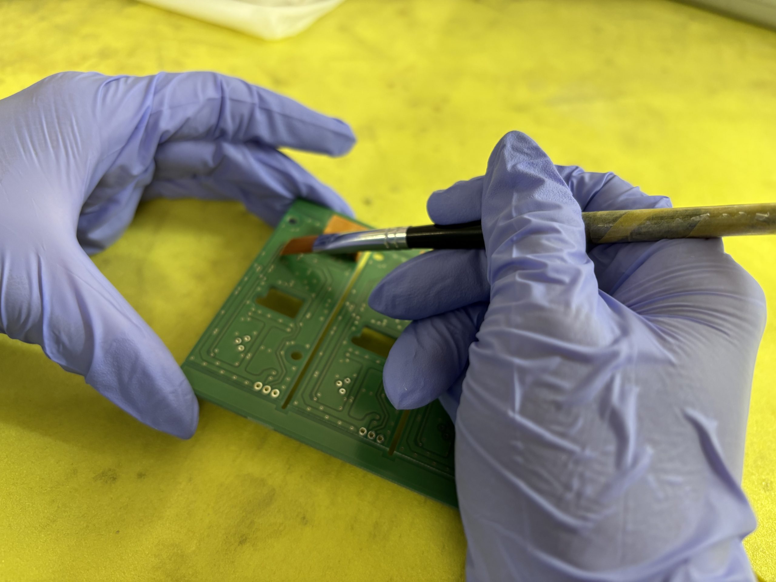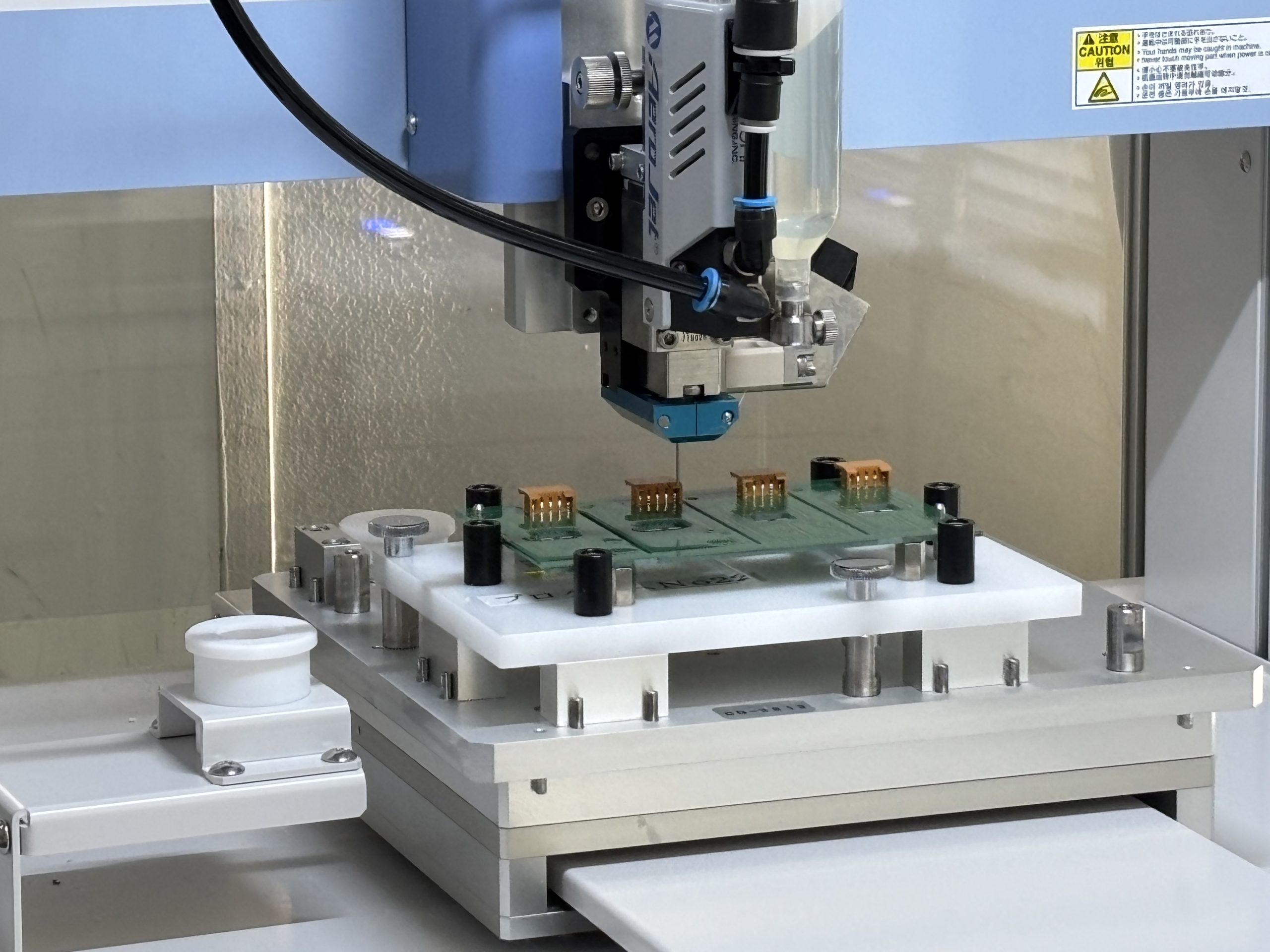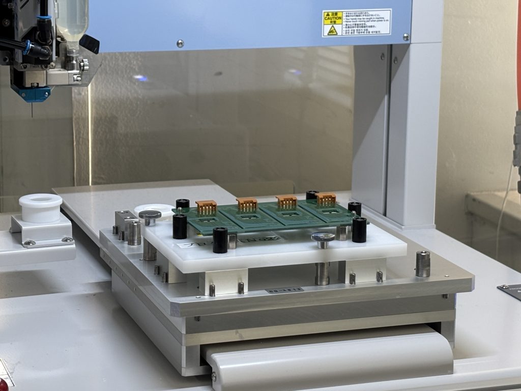 今まで基板の防湿材のコーティングを手作業で行っていました。その工程を設備を導入することで自動化し、スピードアップすることで効率化を図りました。実際に作業時間が1/2に減りましたし、作業者の負担を軽減することができました。これからもお客さまから信頼していただけるよう日々進化していきたいと思います。